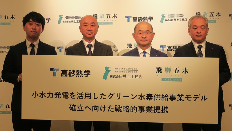 高砂熱学工業株式会社(本社:東京都新宿区、社長:小島和人、以下/高砂熱学)、飛騨五木ホールディングス株式会社(本社:岐阜県高山市、代表取締役:井上 正博、以下/飛騨五木HD)、株式会社井上工務店(本社:岐阜県高山市、代表取締役:井上 正博、以下/井上工務店)は、小水力発電を活用したグリーン水素供給事業モデル(以下/本モデル)確立に向けた「戦略的事業提携に関する協定書」を締結し、高砂熱学が井上工務店の種類株式を取得したことをお知らせいたします。